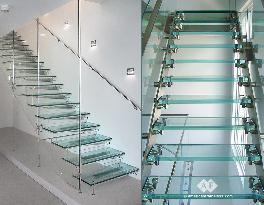 American Frameless Glass Enclosures specializes in glass stairways including: glass stairs, glass handrails, frameless glass stairs, frameless glass handrails, and more. These designs are available through American Frameless.