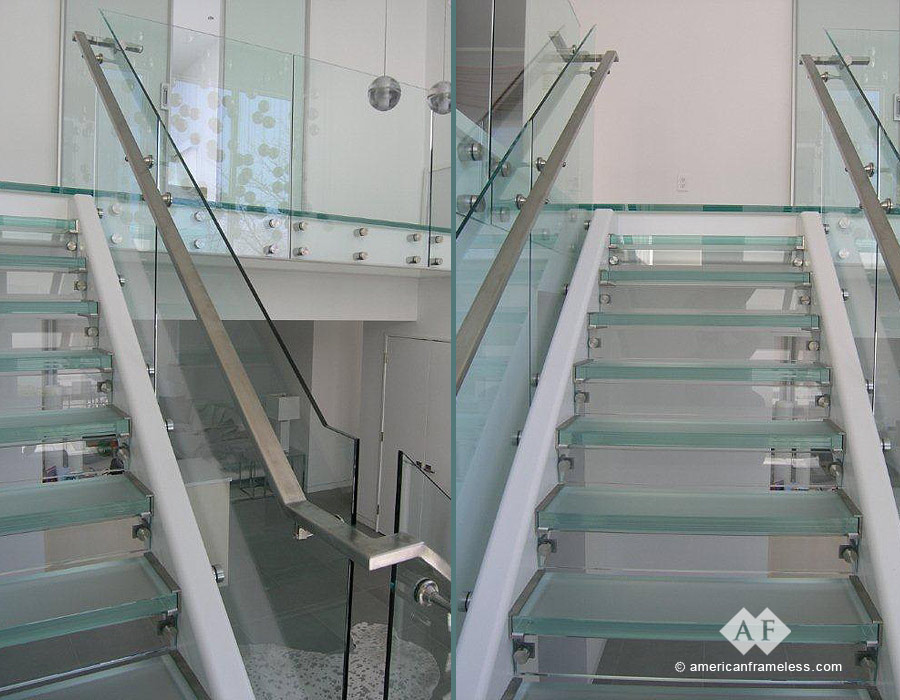 American Frameless Glass Enclosures specializes in glass stairways including: glass stairs, glass handrails, frameless glass stairs, frameless glass handrails, and more. These designs are available through American Frameless.