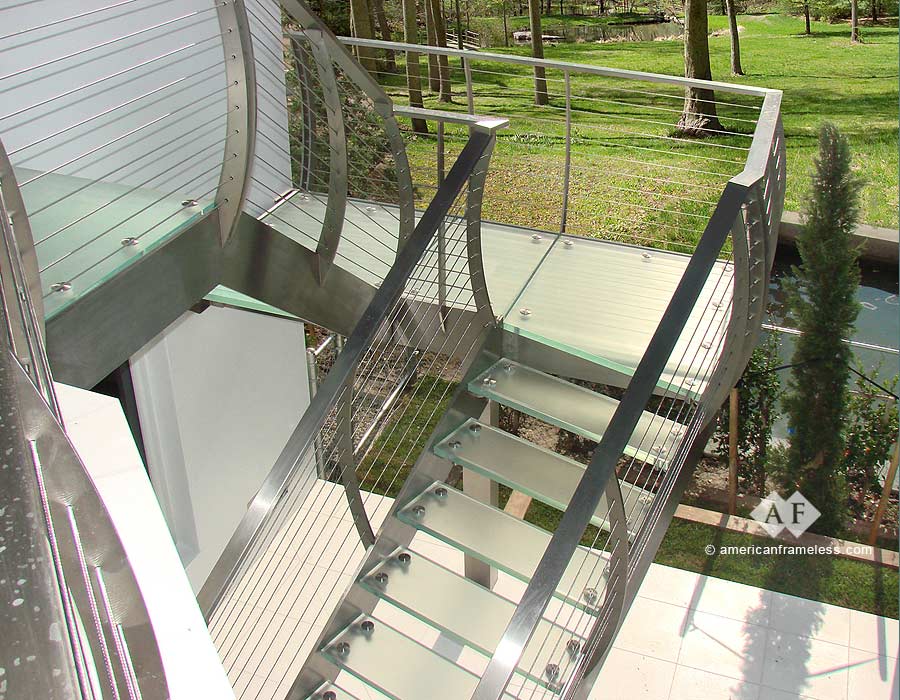 American Frameless Glass Enclosures specializes in glass stairways including: glass stairs, glass handrails, frameless glass stairs, frameless glass handrails, and more. These designs are available through American Frameless.